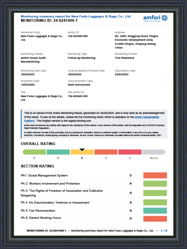 New Fuda Luggages & Bags Co., Ltd. Osnovano 2006. godine,To je tvrtka za opremu za sportove na otvorenom koja integrira istraživanje i razvoj i proizvodnju.,Biciklizam,ribarstvo,Na temelju proizvoda putnih torbi koje proizvodi tvrtka,Proizvodna tehnologija obuhvaća šivanje,visoka frekvencija.